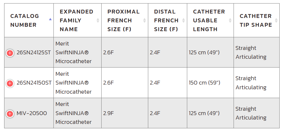 26SN24150ST SwiftNINJA ® Steerable Microcatheter 2.6F Tapered to 2.4F, 150 cm (59"), Straight Articulating, Box of 01