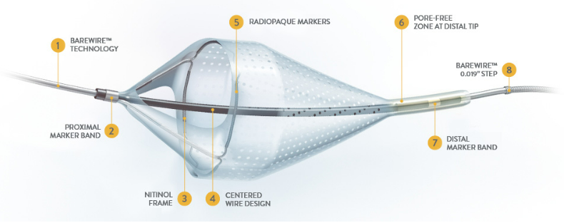 Is designed to enhance capture efficiency by maintaining wall apposition and protecting the vessel wall from direct contact with the nitinol frame - Non-thrombogenic Hydrophilic Coating