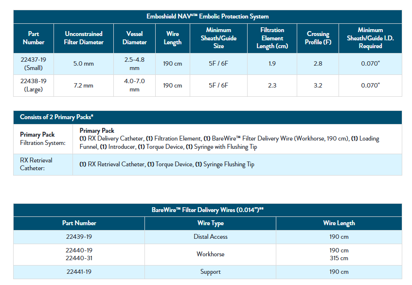 Abbott 22437-19 Emboshield NAV6™ Embolic Protection System, 5.0mm Filter Diameter X 190cm Wire Length, Box of 01
