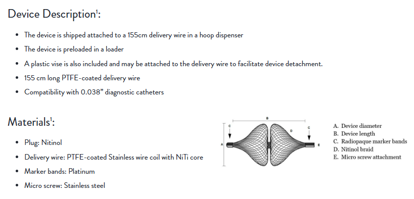 The AMPLATZER Family of Vascular Plugs is designed to provide optimal embolization through single device occlusion, full cross-sectional vessel coverage and controlled, precise deployment. Vascular plugs have the ability to be recaptured and repositioned, if necessary. A single device from the family of vascular plugs embolizes a vessel that would often require many coils, which makes it an efficient and cost-effective alternative.