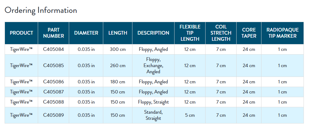 TigerWire™ steerable guide wires are stainless steel supportive workhorse guide wires designed for exceptional steering.