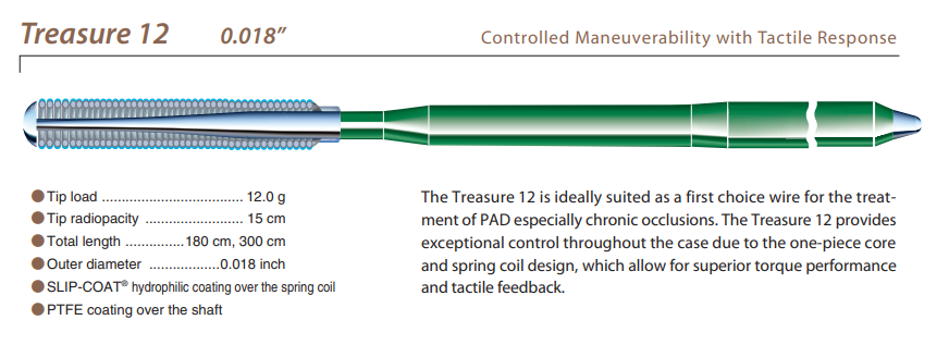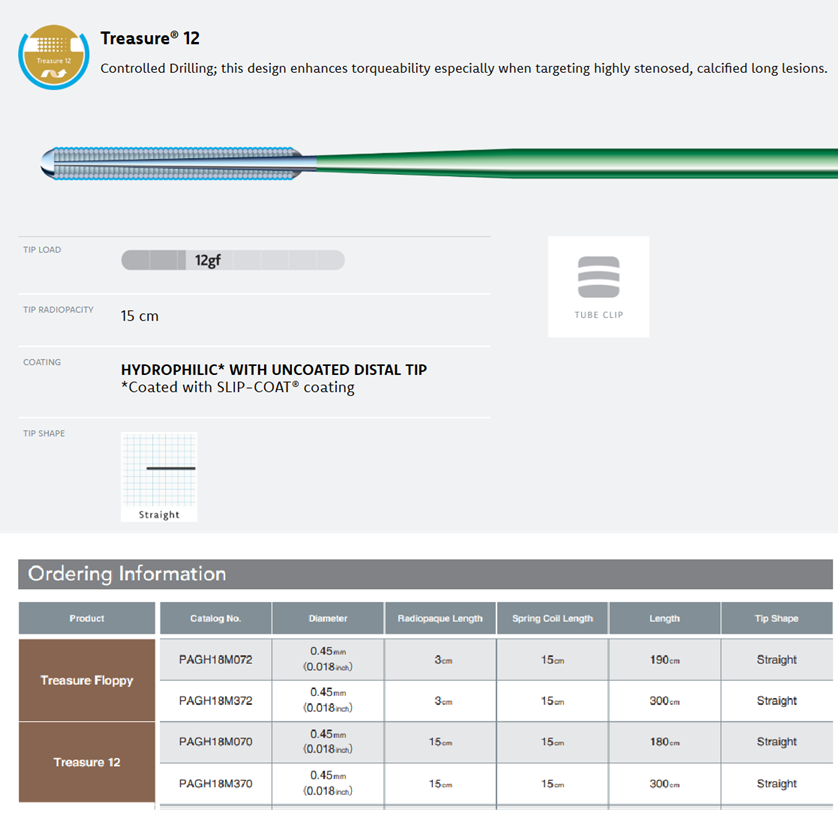 - The Asahi Treasure peripheral guide wire is a steerable guide wire with a diameter of 0.018"