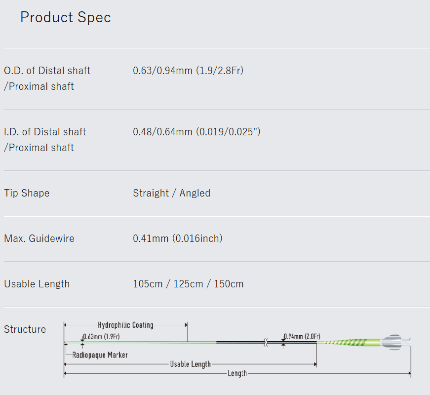 - Tip Design: The softer tip design enhances guidewire tracking in tortuous anatomy and enhanced safety profile.