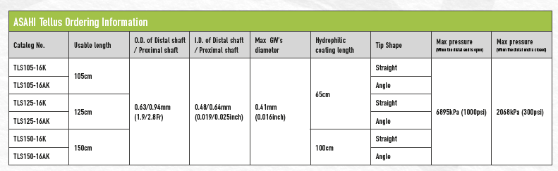 ASAHI TLS150-16AK Tellus Microcatheter, 1.9F/2.8F, 150 cm Usable Length, Hydrophilic Coating 100 cm, Tip Shape Angle, Box of 01