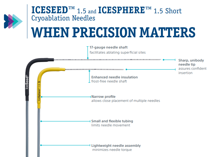 Used with CT systems, image-guided cryoablation needles enable cryoablation visualization for optimal tumor coverage and improved CT artifact.