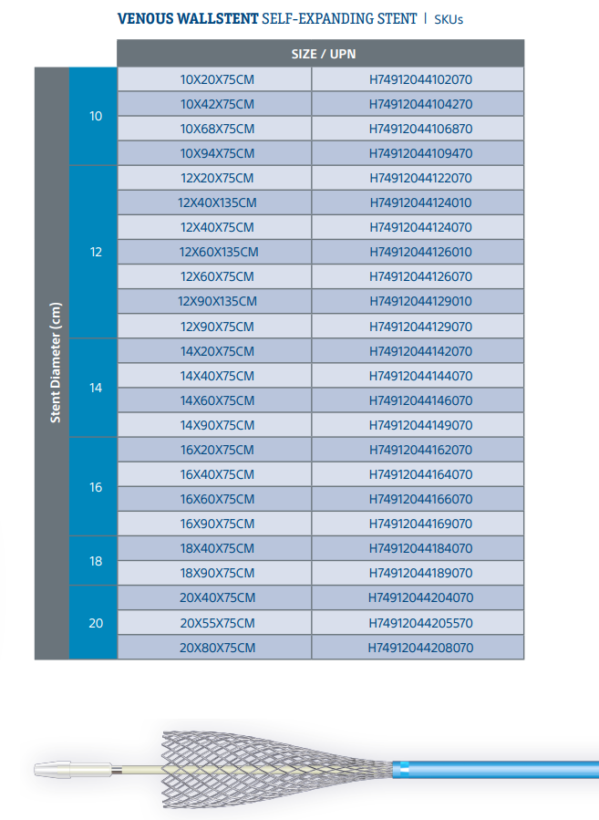 Boston Scientific, H74912044189070 Wallstent™, Venous Wallstent Self-Expanding Stent, 18mm x 90mm x 75cm, Box of 01