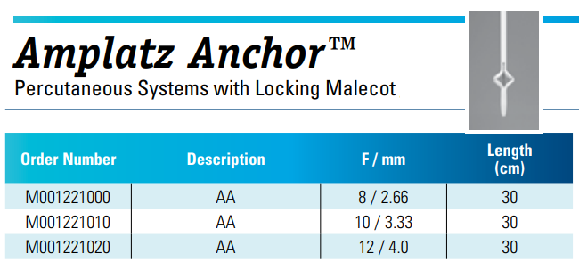 Boston Scientific M001221000 Percuflex™ Amplatz Anchor™ Catheters with Locking Malecot, 22-100, 8Fr (2.66 mm) X 30 cm, Box of 01