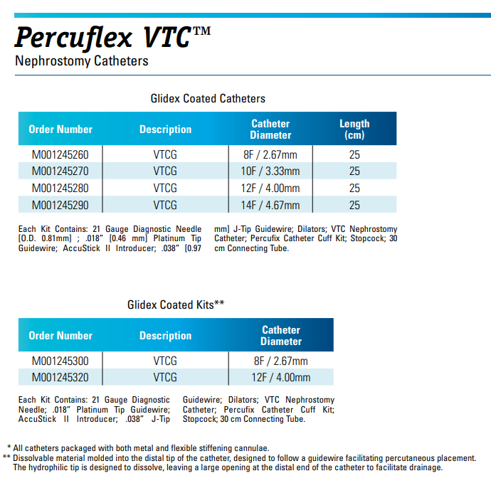 - Percuflex™ Material (VTC Nephrostomy Catheter) A choice for cases where additional catheter rigidity is needed