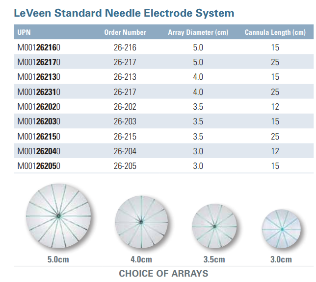 - LeVeen SuperSlim™ Electrode cannula design options provide an excellent choice for patients who are at risk of bleeding