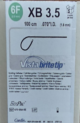 Cordis 6700540E VISTA BRITE TIP®, 670-054-0E Guiding Catheters 6Fr XB 3.5 (Extra Back-up 3.5) 100cm x .070" I.D. (1.8mm), ECOPAC® Five Pacs. Box of 05