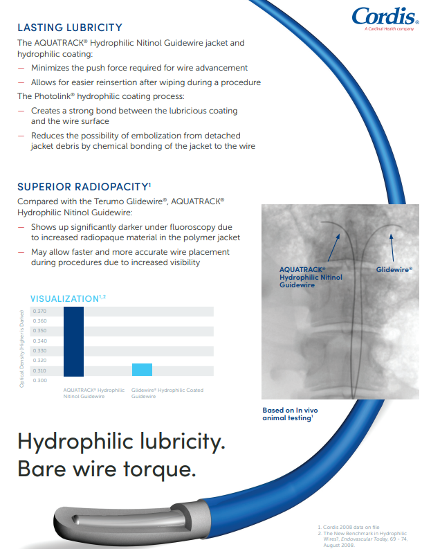 Compared with the Terumo Glidewire®, AQUATRACK® Hydrophilic Nitinol Guidewire provides: