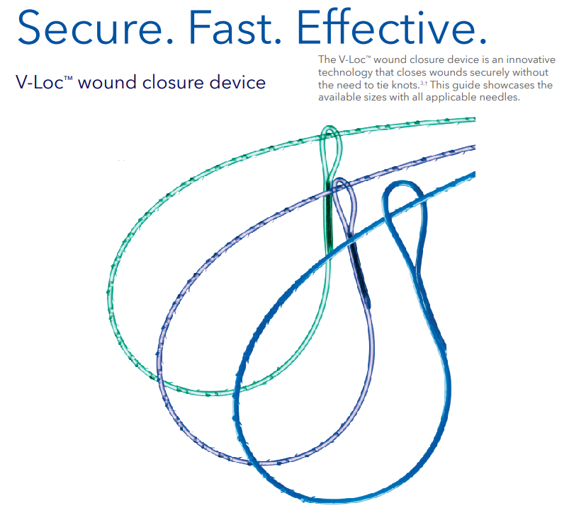 The V-Loc wound closure device replaces tedious knot tying with hundreds of tiny barbs that evenly distribute tension along the wound — significantly reducing suture time and may improve wound healing outcomes.