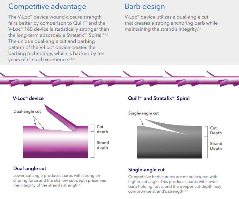 The V-Loc™ device uses a dual-angle cut that creates a strong anchoring barb