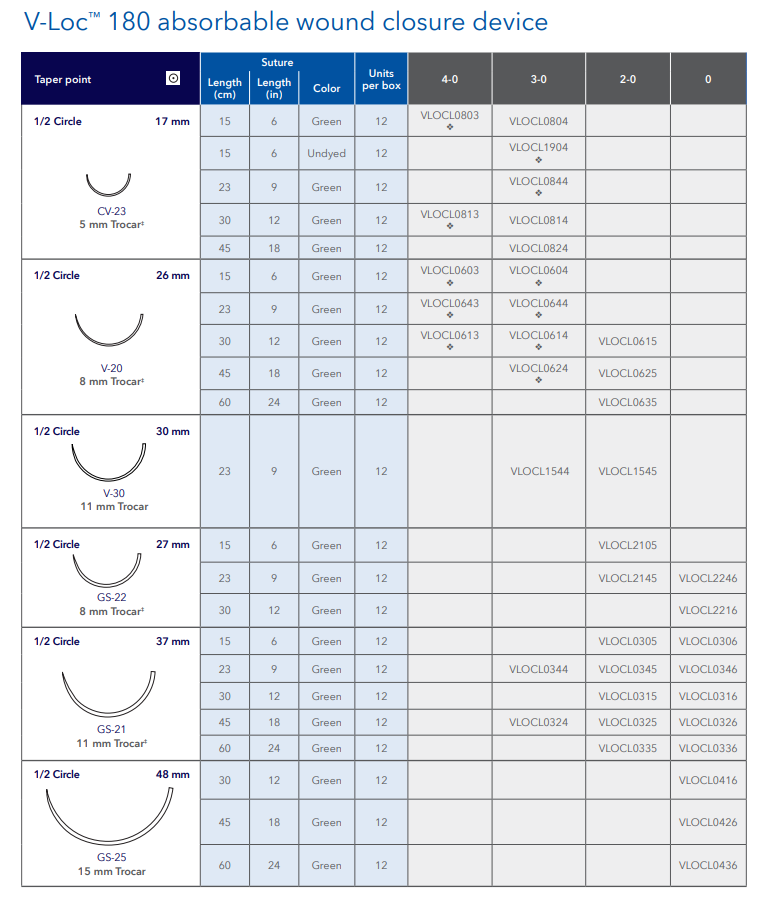 - V-Loc™ 180 Absorbable Wound Closure Device