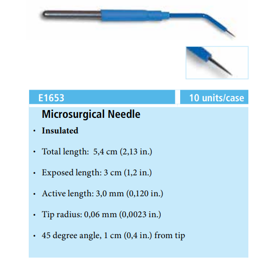 E1653 Valleylab™ Angled Micro-Needle Electrode, 45°, 1 cm from tip, 3 cm, Box of 10