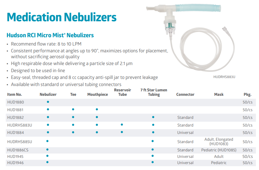 Medline HUD1884 Hudson Micro Mist Nebulizers Kit with Tee Mouthpiece, Reservoir Tube, 7' Tubing, Universal Connector, Case of 50