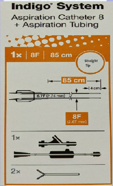 Penumbra CAT8STR85KIT Indigo 8 Straight Tip, 85cm + Dynamic Aspiration Tubing, 8.0 Fr / 8.0 Fr. x 85 cm. Box of 01