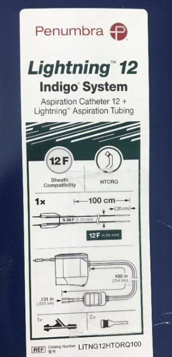 Penumbra LITNG12HTORQ100 Lightning™ 12, Indigo System 12, Aspiration Catheter HTORQ Tip, 12Fr x 100cm, + Lightning Aspiration Tubing, Box of 01