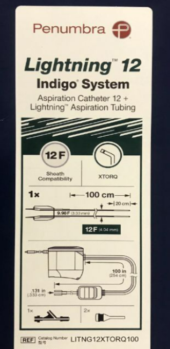 Penumbra LITNG12XTORQ100 Lightning™ 12, Indigo System 12, Aspiration Catheter XTORQ Tip, 12Fr x 100cm, + Lightning Aspiration Tubing, Box of 01