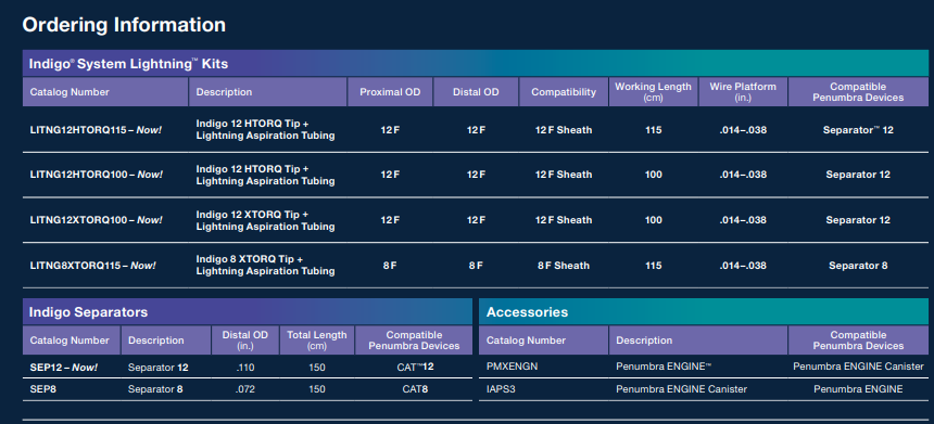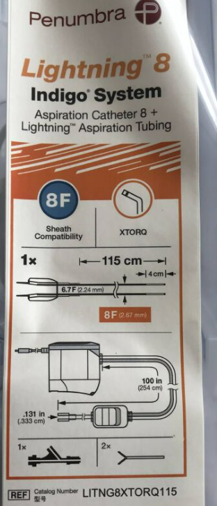 Penumbra LITNG8XTORQ115 Lightning™ 8, Indigo System 8, Aspiration Catheter XTORQ Tip, 8Fr x 115cm, + Lightning Aspiration Tubing, Box of 01