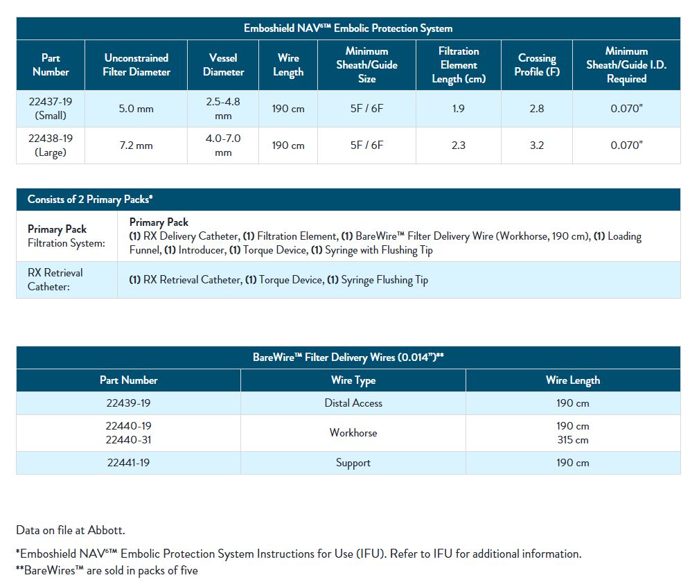 The Emboshield NAV6™ device can only be used with the BareWire™ Filter Delivery Wire.