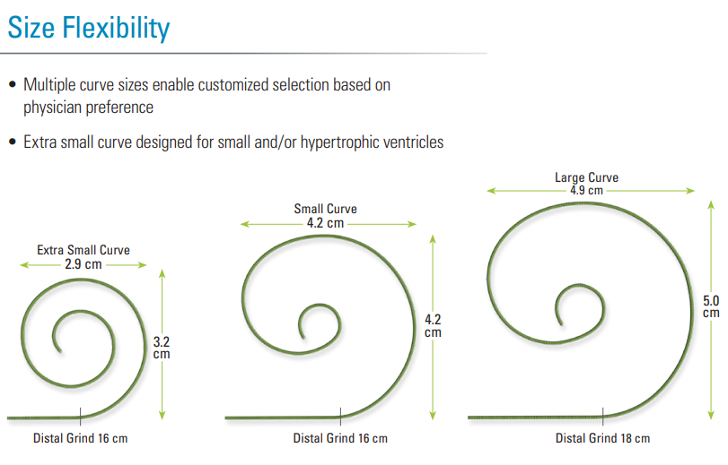 - Extra small curve designed for small and/or hypertrophic ventricles