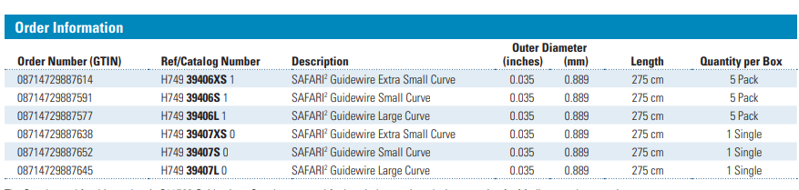 - Broadest guidewire choice with three curve sizes including the extra small, enabling customized selection based on physician preference