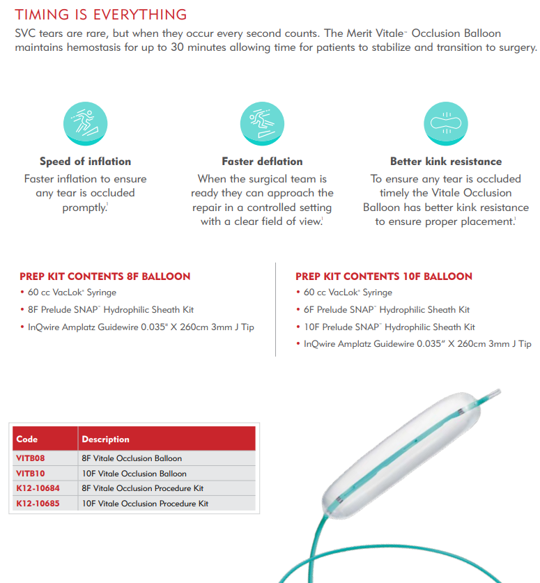 - The Occlusion Balloon Catheter is designed for temporary occlusion of large vessels, including the superior vena cava (SVC). The catheter may be used for perioperative occlusion and emergency control of hemorrhage associated with vascular tears that may occur during Lead Extraction procedures.