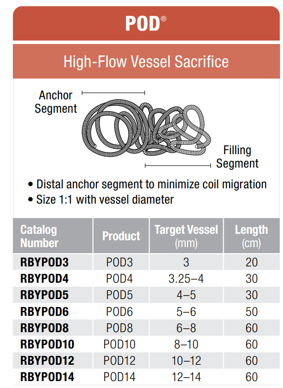 RBYPOD5 Peripheral Embolization Coils POD® Occlusion Device Ruby POD 5 - 5mm x 30cm, Box of 01