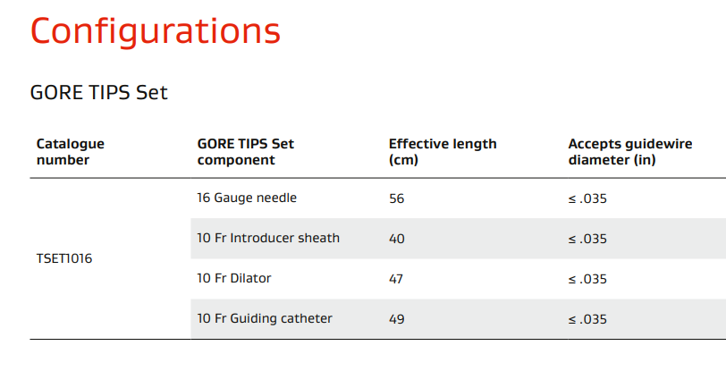 The GORE TIPS Set, GORE® TIPS Sheath and GORE TIPS Needle, are intended to be used together for percutaneous transjugular liver access during diagnostic and interventional procedures in patients undergoing a Transjugular Intrahepatic Portosystemic Shunt (TIPS) procedure.