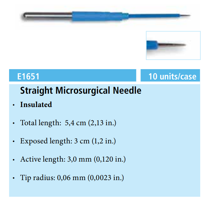 Valleylab E1651 Straight Tungsten Micro-Needle Electrode, 3 cm, Case of 10