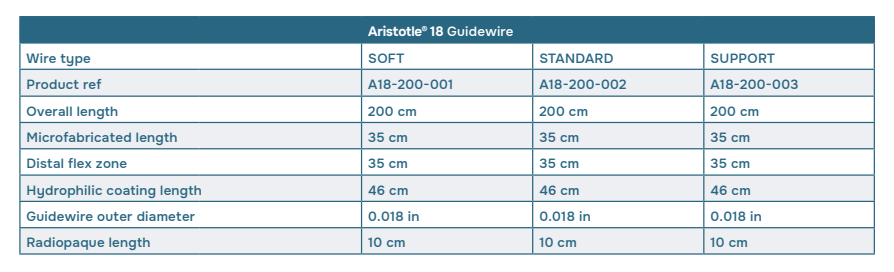 - Increased distal tip softness in comparison to the Aristotle® 14 that doesn’t compromise on desired support within the proximal end of the wire.