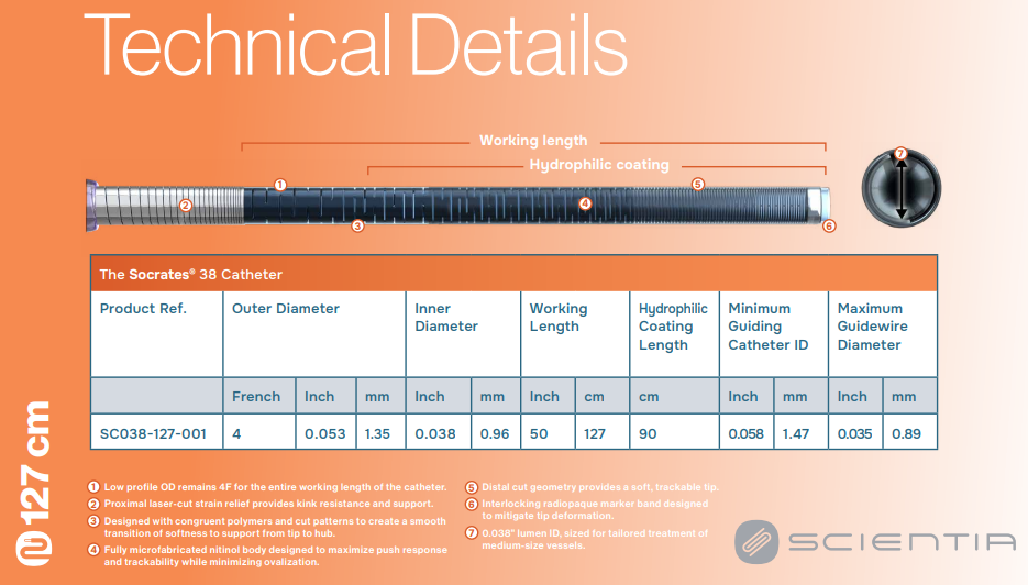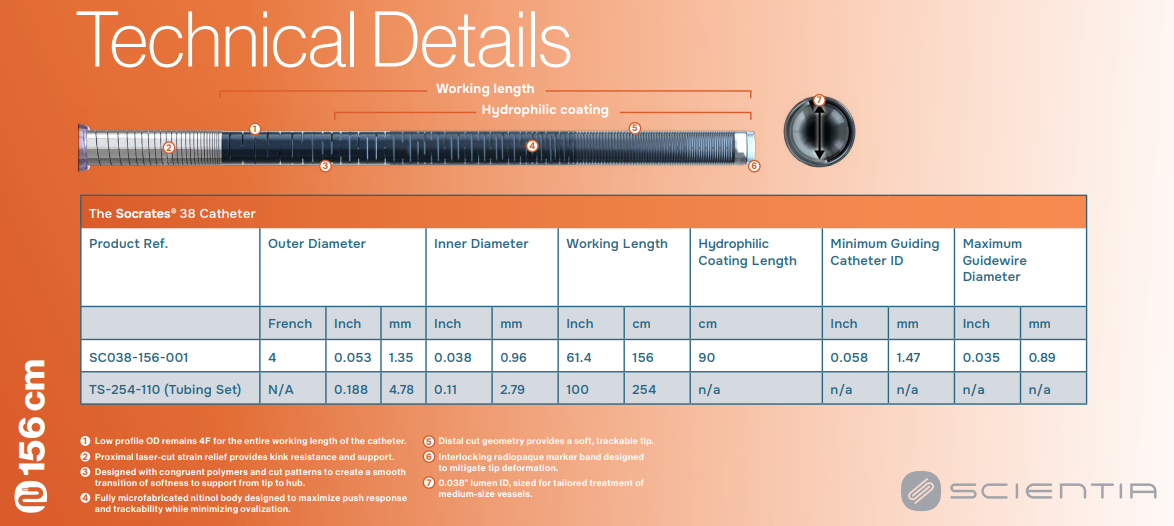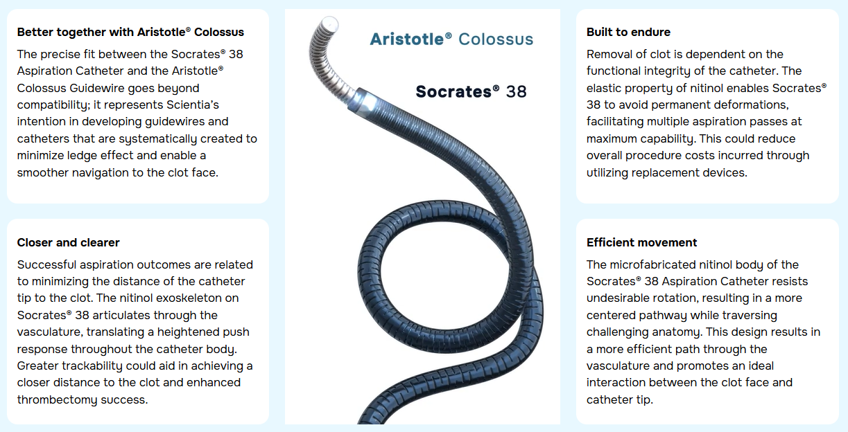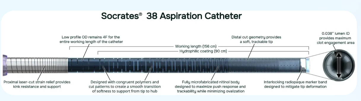 Socrates® 38 Aspiration Catheter is the first fully microfabricated aspiration catheter indicated for the revascularization of patients with acute ischemic stroke.