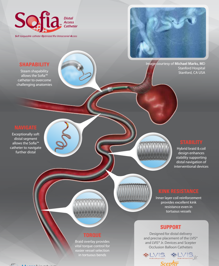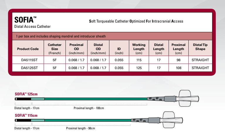 The SOFIA™ Catheter is designed for distal navigation and supports precise delivery of a variety of neurovascular therapies