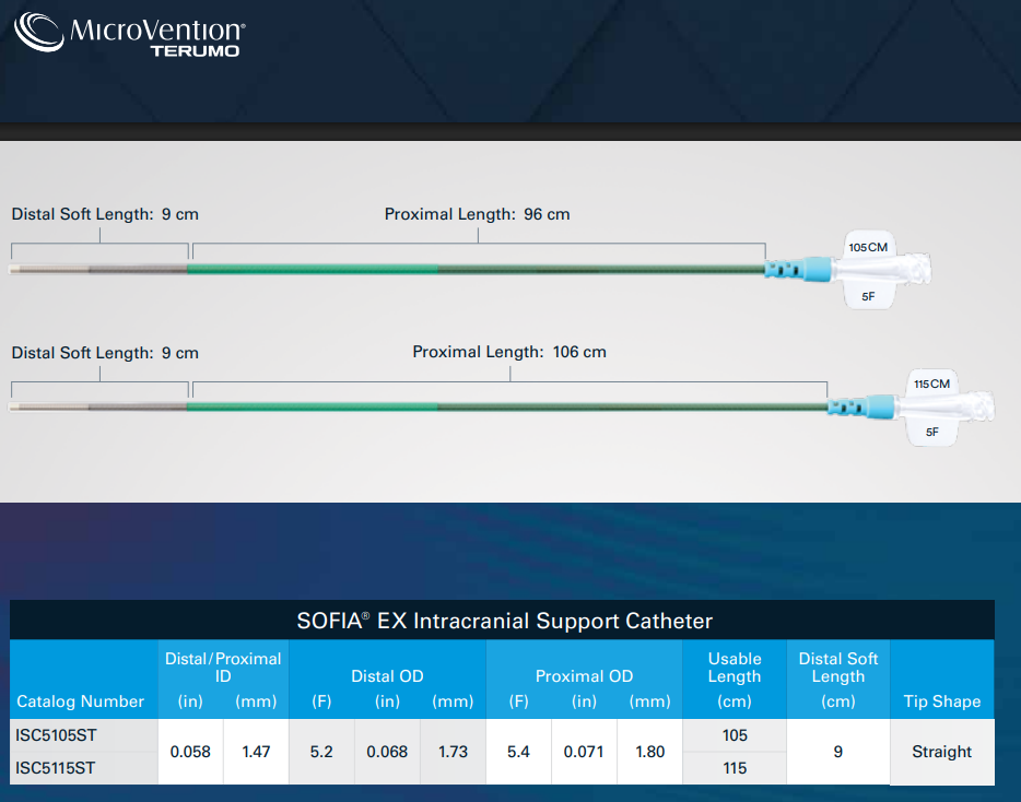 Terumo ISC5105ST SOFIA™ EX Intracranial Support Catheter, 5Fr X 105cm, Straight tip, Distal Soft Length 9cm. Box of 01
