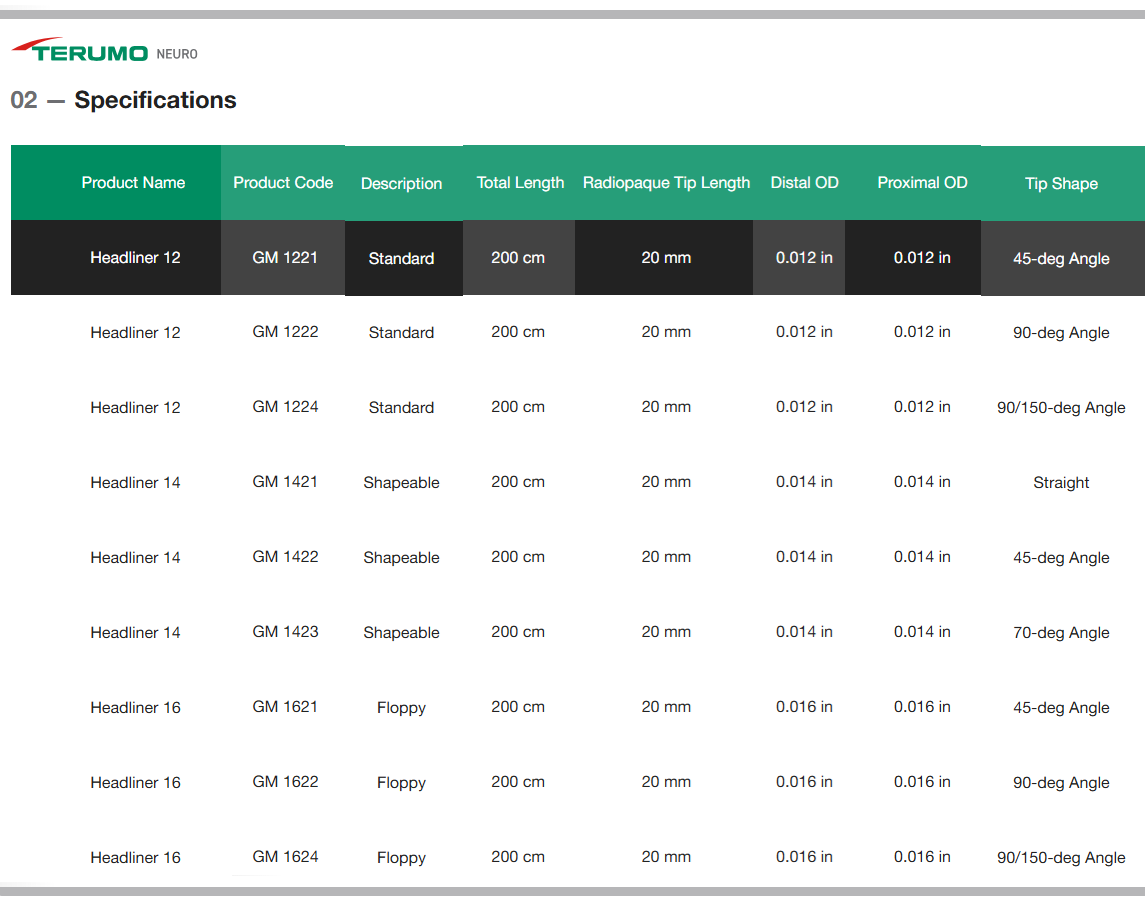 - Terumo Glide Technology hydrophilic coating offers unmatched lubricity, providing consistent and enhanced maneuvering